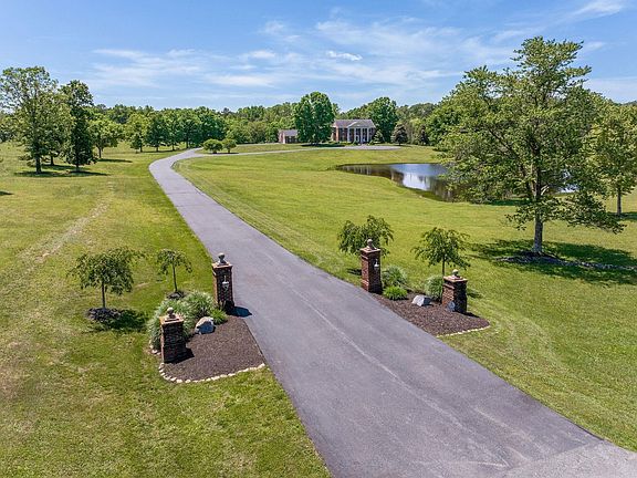 Bello Corte is a 36-acre retreat in the heart of Keswick, ideally sited to take in sweeping views of the Southwest Mountains. The stately brick residence offers over 7,000 finished square feet with a gracious center hall, formal living and dining rooms, a spacious kitchen with breakfast area, a cozy family room with fireplace, and a light-filled sunroom. Upstairs, the primary suite includes an adjoining flex room—ideal as an office, nursery, or private sitting room—alongside two additional en suite bedrooms. A fourth bedroom is located on the top floor, or the finished walkout lower level can be configured to serve as a fourth suite, offering excellent flexibility. The lower level is perfectly suited for entertaining, complete with a fireplace, bar, gym, and expansive open space. Outside, enjoy multiple patios, mature landscaping, and a nearly acre-sized, spring-fed pond stocked with bass and crappie. Two detached garages provide space for up to five vehicles, workshops, or hobbies—one outfitted with a lift for additional parking or car maintenance. Recent renovations and updates complement the home’s timeless appeal and turn-key condition. Just 4.5 miles to Keswick Hall and less than 10 miles to Charlottesville city limits.