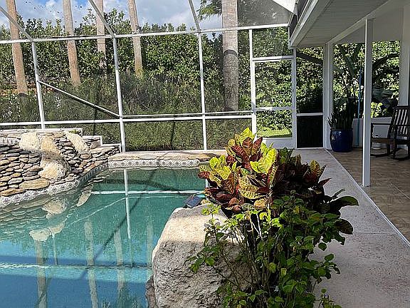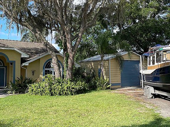 This is an oversized (total square footage under roof 3635) 3 bedroom 2 full bath designer home with walk in pantry and ALL walk in closets by Artistic Homes with spacious and smart architectural design. This home overlooks Crescent Lake with mature, privacy inspired landscaping, soaring palms and oaks at the end of a quiet cul de sac. Separate well for sprinkler system. There is a wood burning fireplace in the living room, a Billiards room off the Master Suite, all granite countertops with all wood cabinets throughout home, 3 large skylights in the gourmet kitchen, and porcelain tile in kitchen, bathrooms, and all high traffic areas. The master suite and master bath were designed w/generous proportion in mind and Jacuzzi jetted garden tub is a real relaxer at the end of the day. The roomy lanai has a Pebble Tech river rock lagoon shaped salt pool with waterfall, oversized spa and a Jenn Air grill in the outdoor kitchenette. One lanai door opens to a private side yard and the other opens out to the sun deck with steps leading down to the fire pit, swing, and seating by lake. For the "tinkerer", a separate extra tall 20x20 workshop with AC & Heat and roll up doors on front and rear of building leading to a very private side & back yard. Plenty of space for boat, RV, or both on second driveway in front of the shop. Home has had approx $100,000 in improvements and renovations since 2016 including all new double pane windows, windowed doors/sliders, granite, cabinets, porcelain tile, vinyl planks, paint in/out, refinished pool/spa w/Pebble tech, refinished Kool Deck/tiled lanai, all appliances, and more.