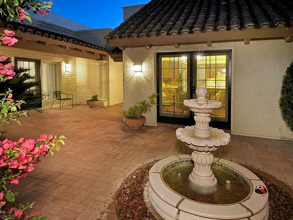 For more information on this property, contact the Listing Agent, Robin Sue Kaiserman at (520) 918-5411 or robinsue@robinsue.com. ELEGANT AND CHARMING VERY SECLUDED TOWNHOUSE IN PRESTIGIOUS GATED SKYLINE COUNTRY CLUB ESTATES, FRONT GATED BRICK COURTYRAD WITH FOUNTAIN, FOYER ENTRY WITH DRAMATIC 20 FOOT HIGH CEILINGS, EXQUISITE GREATROOM WITH HIGH CEILINGS, BEAUTIFUL FIREPLACE AND WALLS OF WINDOWS, FORMAL DINING ROOM WITH WOOD FLOORS, WET BAR, LIGHT AND OPEN KITCHEN WITH PANTRY, LOVELY BREAKFAST AREA WITH FRENCH DOORS TO THE COURTYARD, TILE FLOORS, 2 BEDROOMS PLUS OFFICE INCLUDING MASTER SUITE WITH FIREPLACE AND SITTING AREA THAT OPENS TO THE REAR PATIO, LUXURIOUS BATH WITH DOUBLE SINKS, SHOWER, TUB AND LARGE WALK-IN CLOSET, ENJOY THE FABULOUS BACKYARD WITH POOL, SPA, LUSH LANDSCAPING, SERENE PRIVACY AND SUNSET VIEWS, SEE FLOORPLAN UNDER VIRTUAL TOUR