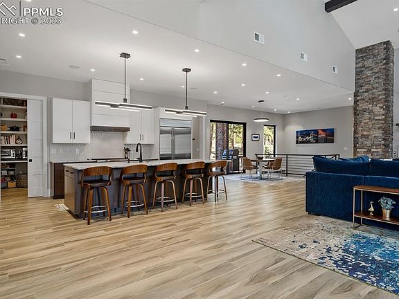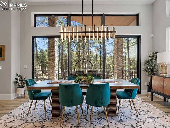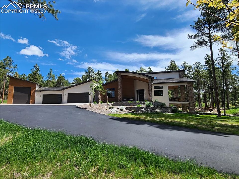 This stunning Mountain Modern custom home boasts extravagance and hidden delights that define Colorado luxury living. Situated on 2.6 acres in the heart of High Forest Ranch, a prestigious gated community of trails, open space and pine trees, the gorgeous design showcases clean lines, premium materials, modern fixtures and nuanced style. The gourmet kitchen is the star of this open floor plan featuring Wolf, SubZero and Cove appliances and stylish leathered marble counters. Chef's pass-through pantry provides huge storage and the spacious island seats six people – perfect for informal gatherings! Host your indoor/outdoor event featuring two dining areas, DaVinci 2-sided fireplace, Control4 entertainment system and outdoor seating on the covered deck. Enjoy abundant space boasting six bedrooms and bathrooms. Escape to your personal sanctuary in the lavish master retreat wing with an en suite spa bath and amazing walk-in shower, custom walk-in closet by California Closets, separate laundry with folding station and a secluded pocket study. Endless entertainment possibilities in the inviting lower level! The expansive family room makes for great gatherings while a media area and wet bar adds to the ambience. Stay fit in the convenient home gym or be creative in the play/craftroom. Relish year-round outdoor living on a covered patio complete with 7-person hot tub. Outdoor toys? The showroom-quality finished and heated oversized garage fits 6 cars or 4 cars plus a Class-A RV with 50amp power, work bench area, hot water sink and floor drains! Head outside to explore the adorable treehouse, fenced backyard with petdoor access and the Trimlight holiday lighting system. Extras - snowmelt system for front porch and sidewalk, powered shades, whole house humidifiers and air purifiers, Culligan water systems, finished storage space and vault, 2nd laundry and much more! Don't miss out on the chance to explore this luxurious home!