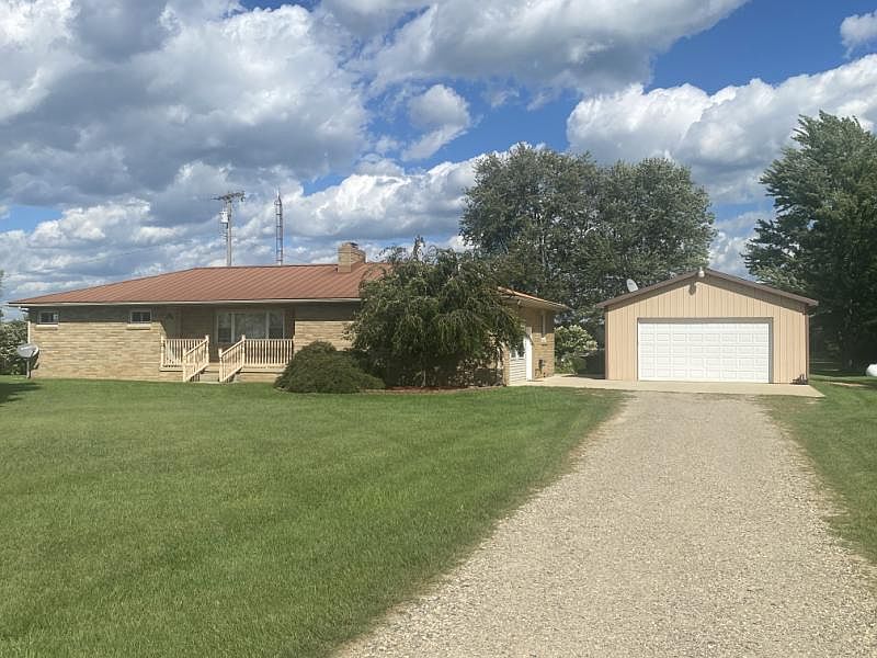 Very well-kept 2 bedroom, 1.5 bath full brick ranch on 2 acres. The property has a 30x40 pole barn with electricity and a cement floor. The updated kitchen in this home has Corian counter-tops and oak cabinets with a tile back-splash. Large dining area that leads to the family room with a natural wood burning fireplace. Spacious full bath with a walk-in shower and dual sinks. Two nice sized bedrooms as well. Updates include newer vinyl windows, metal roof (2017), gutters (2017), boiler (2019), hot water heater (2019), cement patio (2018) and septic pumped (2019). Enjoy the beautiful view off the back deck anytime of day. The wildlife is just out the back door. The large yard is great of endless activities. Here are some dimensions of the rooms: Living Room:14x10, Dining Room:12x9, Kitchen:12x11, Family Room:14x11, Recreation Room:20x12, Bedroom-Mstr:13x11, Bedroom:11x10, Bath-Full:10x7, Bath-Lav:7x4, Laundry Area/Room:10x7.