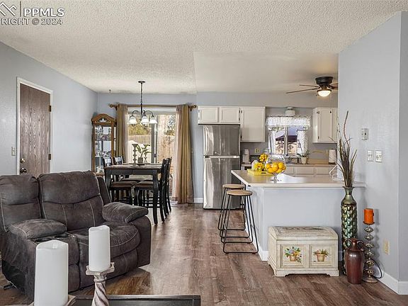 Wonderfully updated ranch home in a well established neighborhood. Tastefully updated with new luxury vinyl plank through most of the home as well as new carpet in the bedrooms. Interior has been freshly painted. Large kitchen with an open floor plan would be great for entertaining. New ceiling fans and dining room chandelier. Front yard is tastefully landscaped with grass, new sod was installed this summer. Large fenced backyard with dog run and shed. Conveniently located just minutes from shopping. Just 9 minutes from Fort Carson.