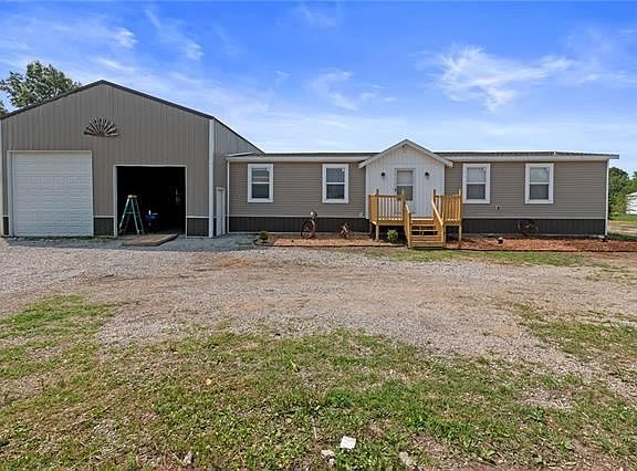 HERE IT IS, THE TOTAL PACKAGE! Highly sought after properties like this don't last long. This is a new 3 bed/2 bath manufactured home with an ATTACHED 30x50x16 shop. That's right the building is attached to the house and with the 16 foot space it allows plenty of room for additions. Build a loft for your entertainment area, home office, or even extra bedrooms. The slab foundation is approximately six inches thick under the house and in the shop, plenty thick for heavy equipment! Brand new deck built on the front and another to be added on the rear of the house to overlook the 5+ acres m/l. A good majority of the back acreage is fenced and was being used for horses. This property is located just South of Kidder, MO and just a couple of miles North of U.S. 36. Only a short drive to Quilt Town USA (Hamilton) and about the same distance to Cameron. Approximately 45 minutes Northeast of Liberty. If you are READY for a move to the country and are all SET for a change of pace and lifestyle, don't wait any longer, it's time to GO! The house has recently been affixed to the property. Taxes shown are for the land only.