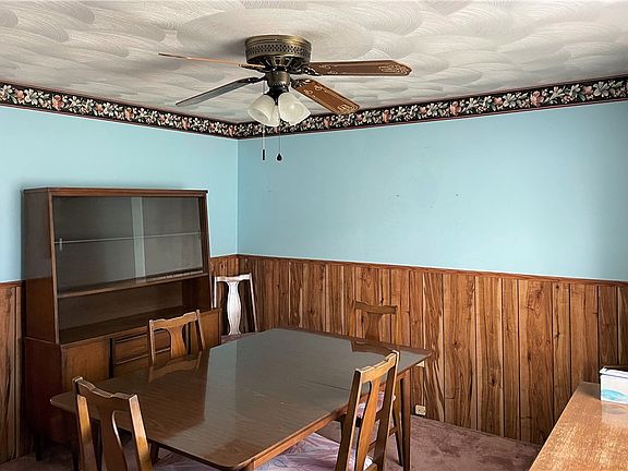 Make this three bedroom brick home yours! Large living room. There is an eat-in kitchen but also a formal dining room. Under the wall-to-wall carpeting are the original hardwood floors. Nicely sized master bedroom with a walk-in closet. The integral garage was remodeled into a large game room with a nice picture window to let in plenty of light. There is an enclosed Pittsburgh Potty in the basement. The large concrete parking area can accommodate a few vehicles. If a buyer decides to add on to the house, there is plenty of room. The back of the yard is already prepared for an above-ground swimming pool. Shed is included for all of your lawn tools.