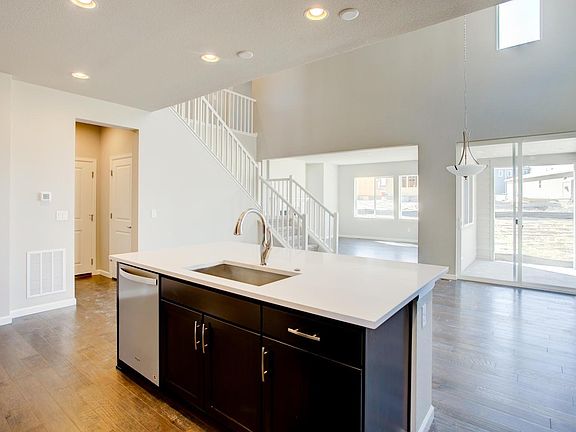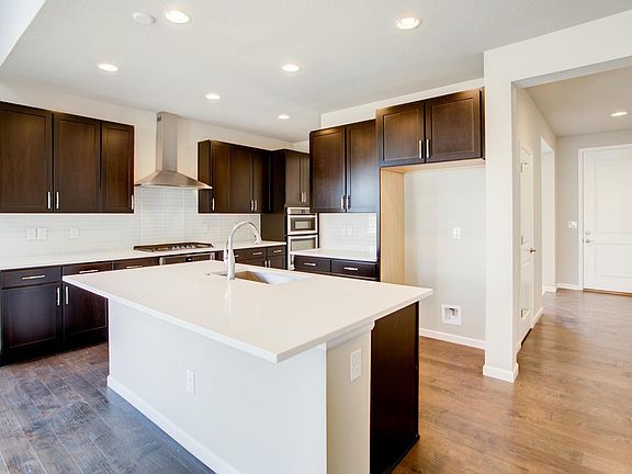 Stunning move-in ready two story home backing to a greenbelt; gorgeous chef's kitchen with stainless steel double ovens, gas cook top, microwave; quartz counters; large kitchen island with plenty of sitting room; separate casual dining area adjacent to the covered patio; great room has gas fireplace; playroom or flex space behind great room; 4 bedrooms and the laundry are upstairs; full unfinished basement. Also, enjoy all the perks of living in Terrain, including dog bone park, terrain swim club and coming soon Ravenwood Pool and Park, plus many other community activities. Taxes are TBD - taxes are currently assessed on land value only and not on the total value of the property. Est. annual taxes are approx. 1% of purchase price.
