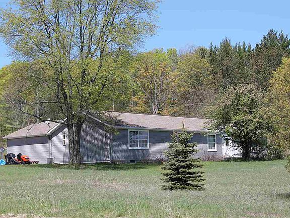 Very Spacious 3 bedroom 2.5 bath home with an attached 2 stall garage situated on 10 acres just off of M-32 East of East Jordan. Over 2,000 sq.ft. of living area all on one level that also offers a 14 block full basement. There is a nice wood burning fireplace to enjoy for a cold winters evening and the interior wall are all dry walled not panel board. Nice country setting that provides close access to Gaylord, Boyne City, Petoskey, or East Jordan.