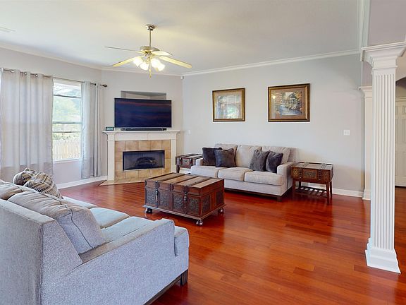 Beautiful 4BR 3BA with Downstairs Primary + 2 more BR Down. Split Bedroom Floorplan + Renovated Kitchen with quartz countertops & breakfast bar, stainless steel appliances & double ovens. Downstairs Primary Ensuite has amazing walk-in closet & luxury Bath, Living Rm could be office. 4th Bedroom + Full Bath upstairs + Large Bonus/Playroom. Extra Large Fenced in backyard with iron gate & covered back patio. Short walk to the lake.