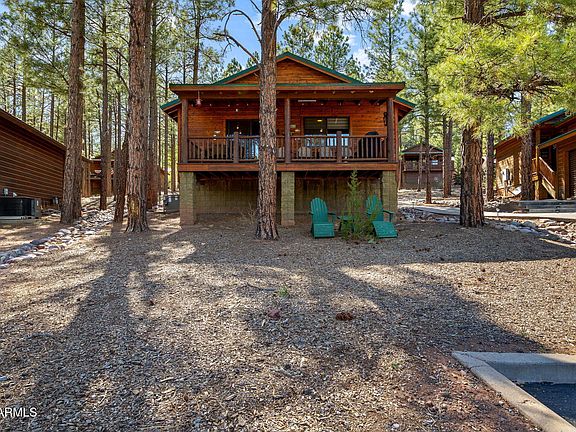 Escape the heat and enjoy this fully furnished 2 bed 2 bath cabin in the highly sought after Bison Ridge community of Show Low, AZ. Surrounded by tall pines and serene mountain views, this retreat features freshly stained exterior siding, new luxury vinyl plank flooring, a cozy propane fireplace, and an oversized covered patio for relaxing in the cool mountain air. You won't be disappointed that this home is located across from the community park, has 2 dedicated parking spots, and electric vehicle charging. With a proven track record as a successful short-term rental, this cabin makes the ideal investment or perfect turnkey second home - pack your bags and start enjoying the beauty of the White Mountains!