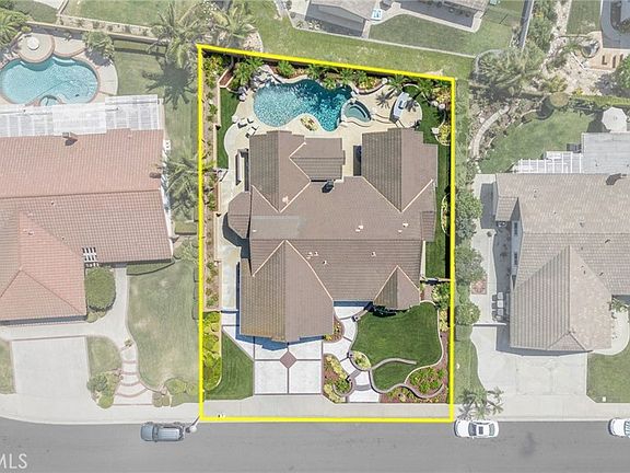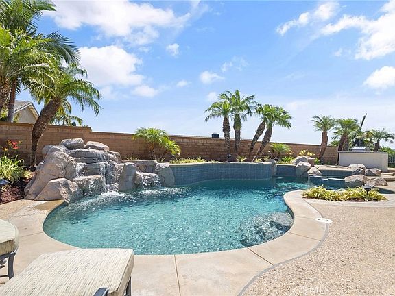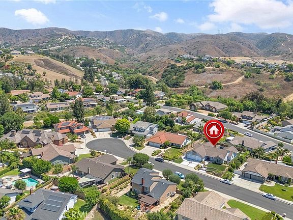 Welcome to this exquisite 4-bedroom, 2-bathroom single-story home nestled in a serene cul-de-sac in East Yorba Linda. Boasting excellent curb appeal and meticulously maintained over the past 34 years, this home offers both comfort and elegance. You will be captivated by the professionally landscaped yard, featuring custom hardscape, stamped concrete with brick ribboning, and a resort-like heated pool with a Pebble Tec finish, relaxing waterfall, and jacuzzi. The covered patio with a vaulted ceiling provides a perfect spot to enjoy the backyard year-round, complete with a built-in BBQ island with a fridge and seating area for entertaining guests. Step inside to find a thoughtfully designed floor plan that includes a family room open to the kitchen and dining areas, and a separate formal living room with a charming brick fireplace. The vaulted ceilings in the family room, kitchen, living room, and master bedroom add to the spacious and airy feel of the home. The kitchen is a chef's delight, featuring natural finish cabinets, granite countertops, a large prepping peninsula, and ample storage. It overlooks the dining area and a bright breakfast nook surrounded by windows. Adjacent to the kitchen is a convenient laundry area. The family room is equipped with built-in bookshelves and a cozy seating niche. The primary bedroom offers a large walk-in closet, a separate storage closet, and enough space for a sleeping area and a sitting area. The primary bathroom boasts a soaking tub, separate walk-in shower, and dual vanities. Three additional bedrooms provide ample space for family or guests. The hallway bathroom features dual vanities and a tub/shower combo. Additional features of this home include plantation shutters throughout, dual pane metal windows and sliding doors, recessed lighting, ceiling fans, central heat and air conditioning, and a spacious 3-car garage with plenty of storage. Conveniently located near shopping at Eastlake Village Center and within the award-winning Yorba Linda school district, this home offers a unique opportunity to own a piece of the Land of Gracious Living! Don't miss out on this stunning property! Schedule a tour today and experience the perfect blend of comfort, style, and convenience.