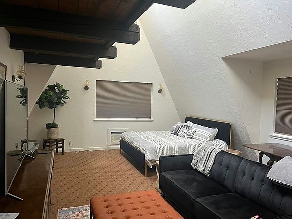 The unit features a functional layout, a spacious living area, and a full bathroom. The open floor plan creates a sense of spaciousness, while large windows and skylights allow plenty of natural light to fill the space. The unit also comes with upper storage space to help keep your belongings organized.