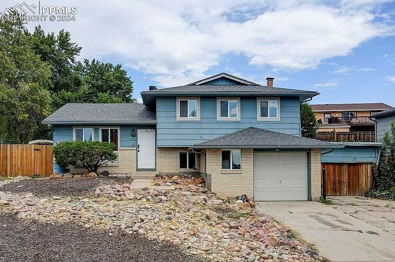 Great floorplan in central COS location! Short hop to downtown, Academy Blvd, shopping and Powers Blvd. Clean and bright tri-level in this quiet neighborhood has everything you need - two living spaces, spacious primary bedroom with two closets, full bath with private access from the primary bedroom and hall, stylish white kitchen with plenty of storage and counter space, soothing neutral wall colors, whitewashed brick fireplace and lower mudroom/laundry area plus 3/4 bath. TONS of natural light throughout. Entertain outside on the newer wood deck and concrete patio. The finished one-car garage provides easy access to an unfinished storage/workshop area where you can tinker to your heart's content. Xeriscape front yard is easy to maintain. Clean and ready for you!