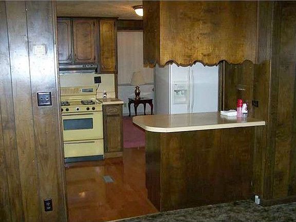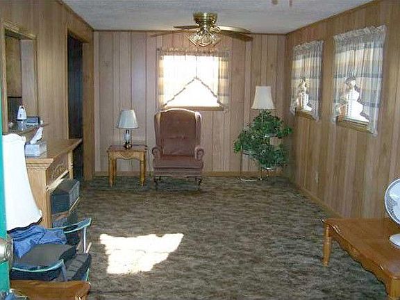 Large Doublewide Mobile home on permanent foundation with a 2 car garage. Also has a dettached garage. Home sits on level 1.2 acres. Kitchen has new cabinets with a bar with a separate dining room and breakfast room. There is a ventless gas fireplace in den. Roof, Water Heater, and air conditioning Unit all replaced about 5 years ago. Home has covered front porch and a deck with ramp on back.