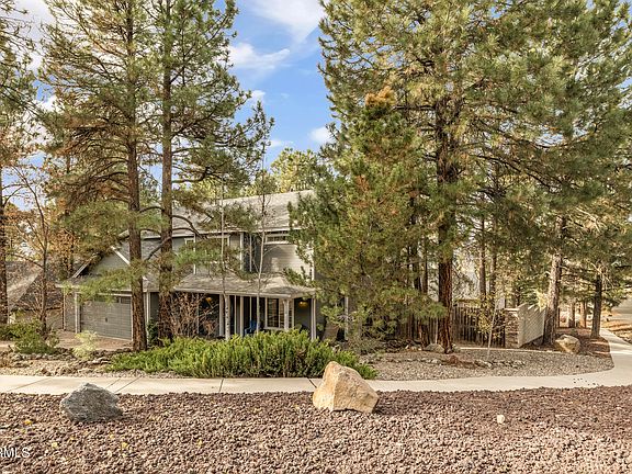 This fine custom home in Flagstaff Meadows is near the National Forest and a neighborhood park. It boasts the most desirable location within the community. New Roof 2023 w/Warranty 10/2025. Peaceful, serene, offering magnificent views of the Mountains and forest. Features 4 bedrooms, a spacious great room with a stone fireplace, a chef's kitchen with custom appliances 2 pantries, elegant granite countertops, and extra cabinetry! The primary ensuite provides privacy with dual vanities & a custom walk-in closet. The bright, open floor plan offers natural light, and the guest rooms are generously sized. All appliances included: This property features a delightful patio and lush landscaping on an oversized lot. Conveniently located just minutes from shopping, entertainment, & Flagstaff.