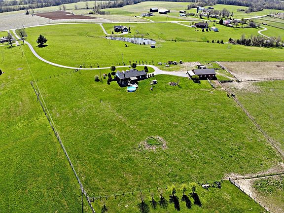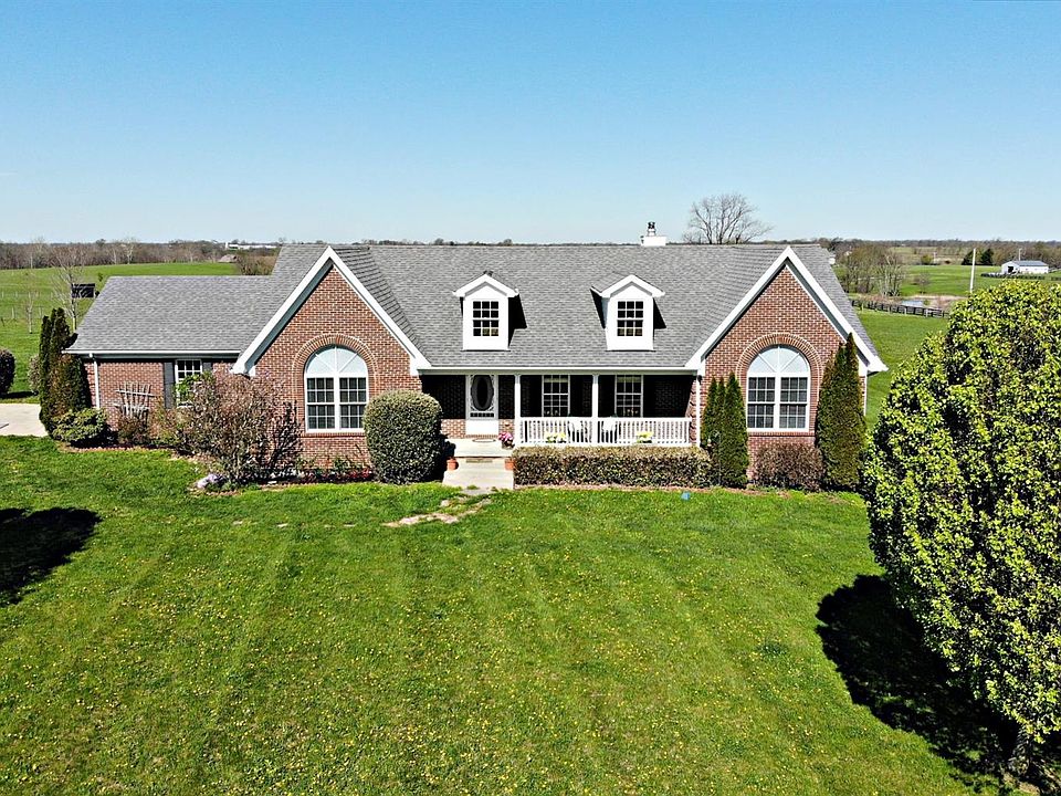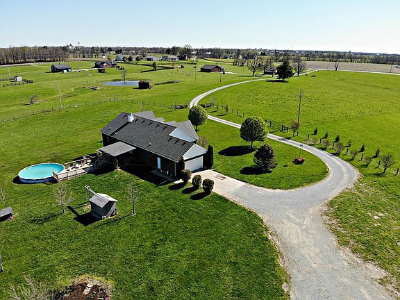 Welcome Home to Comfortable Country Living. Beautiful brick home situated on a 20 acre farm that includes fenced pastures, a 8 stall horse barn with tack room, a 5 acre Alfalfa Field, and cute chicken coop. This custom built home features 3 Bedrooms on the main level each with nice deep closets, an elegant Master Bath, Full Hall Bath, L Laundry/Mud Room, plus an Wide Open Living Room/Kitchen with Granite counters, ample cabinet space and a custom Island. The Finished Walk-out basement has a Full Bath and Large Bedroom, another room being used as a Bedroom, a Rec/Pool Table area & storage room. Get ready to enjoy summer days around the pool or watch sunsets under the covered back deck. This property has so many special qualities that add functional character. Beautiful views all around!