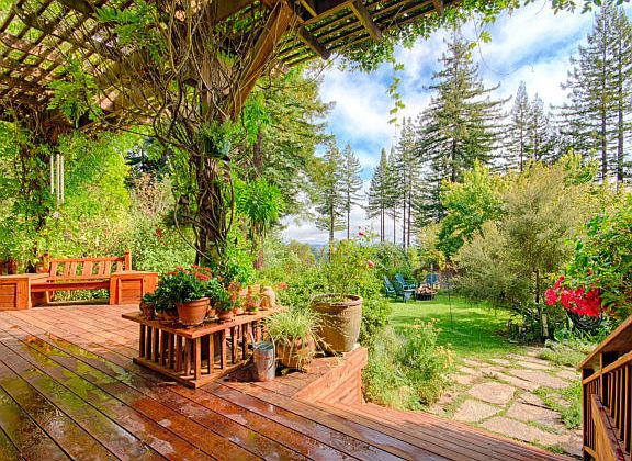 Take in the Awe-inspiring Monterey Bay Ocean Views and Penninsula City Lights from this serene, single level, estate property. The breathtaking views alone are worth the visit. Bonus: the view can never be blocked by future development. Charming Wisteria vines frame the home, pergola and deck. A Magical setting including full sun exposure, a cascading waterfall, fruit trees, nut trees, Redwoods & an enclosed vegetable garden too. Amenities incl. Brazilian Cherry hardwood, Slate, and Travertine flooring, a designer kitchen with granite counters, custom windows and accordion Living Room doors that open from one wall to the other, indoor and outdoor surround sound system, hot tub, cold plunge pool, automatic exterior fire supression system, irrigation systems, 2 Wells, leased solar bank & much more. 35,000 gal. of water storage (7 tanks) w/fire truck hook up. 10x12 guest cabin, outdoor shower w/on-demand propane heater. Agricultural zoning, 25 min. to Aptos. Peace & tranquility live here.
