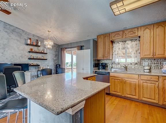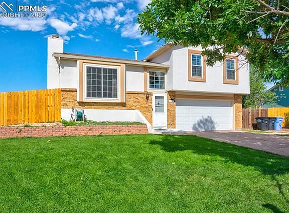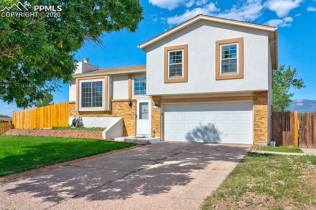Beautiful 3 bedroom, 2 bath, 2 car garage home with glorious views of majestic Pikes Peak! Open floor plan lets you entertain in style, with granite countertops, kitchen island, custom cabinetry and stainless steel appliances. Three bedrooms on the upper floor and the master has a large walk-in closet and adjoining bath. Sit outside on the covered back porch and take in the gorgeous views of Pikes Peak, while enjoying your morning coffee, listen to the water rippling through the rocks in the creek just beyound the grove of trees behind the house. There are trails there that lead you right to the school or the stores. This home has been well cared for and owners recently installed a brand new privacy fence.