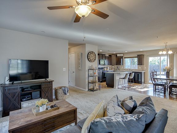 Cute, Clean and Move in Ready! This home offers an open floor plan, solid surface kitchen countertops with a large island and great color choices. This home was built in 2014 and has 3 bedrooms and 2 bathrooms, double master closets, indoor laundry room, and nicely landscaped backyard with a 20X25 concrete patio and firepit, 2 car finished garage and levolor shades throughout