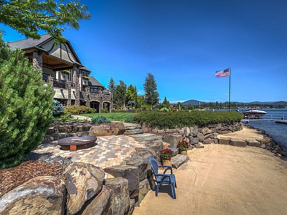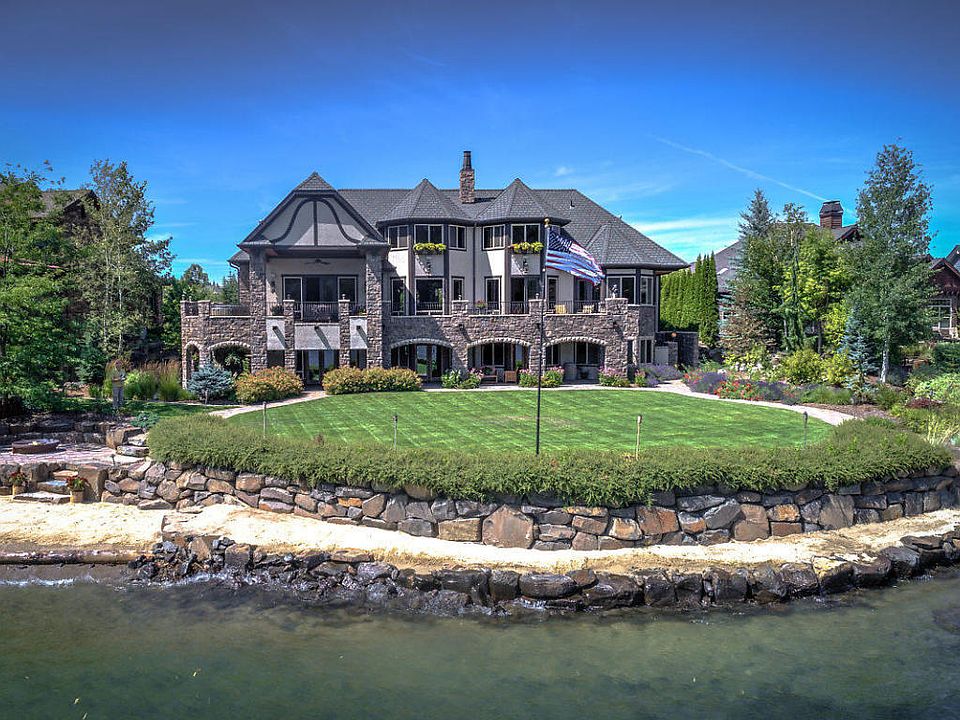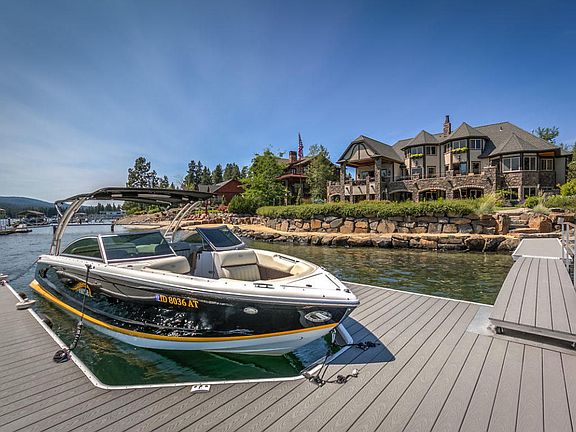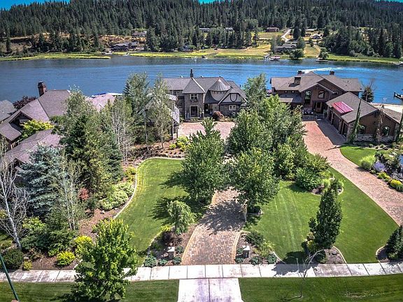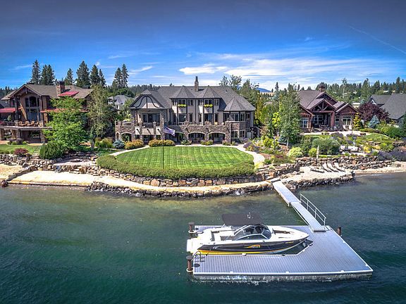 Exceptional Spokane River home with 122' of frontage in the prestigious Edgewater Estates. This beautiful waterfront home features 7423 sq. ft., 5 Bedrooms, 5.5 bathrooms, theater room, elevator, and 2500+ bottle wine cellar. Spacious main floor master bedroom and large 3+ car garage. Great outdoor entertaining areas with covered porch and large lawn/beach areas. Come enjoy this 1 of 1 North Idaho waterfront getaway!