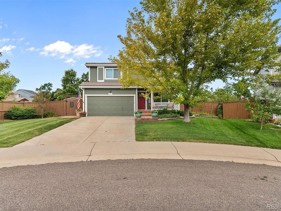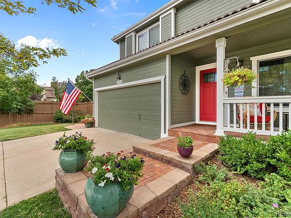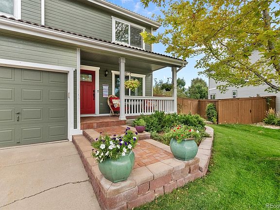 This clean, updated, professionally landscaped, move-in ready 3-bedroom, 3 and 1/2 half bath home is in the Heart of Highlands Ranch! The front yard features a large perennial garden bordered with stone walls and brick steps leading to a roomy, covered porch. The open main level floorplan features a family room, kitchen, dining area, powder room and laundry room. Samsung stainless steel kitchen appliances and LG high-capacity washer and dryer are included. The kitchen is highlighted with new quartz countertops, glass tile backsplash, freshly painted cabinets, glass top electric convection range, ultra quiet dishwasher, refrigerator, and built-in microwave. The kitchen and eating area also feature newly refinished hardwood floors and access to the backyard through an 8-foot custom sliding glass door with interior miniblinds. The center of the home exhibits a custom 2-story stair rail with iron balusters. The top floor presents 3 bedrooms, 2 full baths, and a roomy loft. The primary bedroom includes a walk-in closet and a private bathroom. The finished basement introduces an open flex room, a ¾ bath, and two egress windows with two-tiered retaining walls and custom covers, giving it a garden level feel. The backyard showcases a stunning, wrap-around herringbone brick patio, a mature landscape with multiple trees, shrubs, perennials, and garden areas. A pergola topped custom side gate with a black iron insert guides you from the front to backyard past a perennial garden, a 100 sq.ft. flagstone patio and a garden shed. The irrigation system includes 5 turf zones, 2 micro spray zones, and a remote control. This southern exposure home rests at the end of a quiet cul-de-sac and offers an attached 2-car garage, concrete tile roof and fully fenced backyard (6ft) with no neighbor to the west. It’s located in Highlands Ranch which means access to open space, parks, four recreation centers and Douglas County schools, some of the highest ranked schools in Colorado.