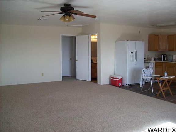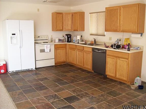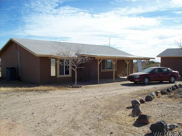 Clean all electric home in quiet surroundings, one block off paved Estrella Road. Midway between Kingman and Laughlin. Open floor plan, front and back covered patio's, concrete walkways to detached 24x20 garage. On the full 2+ acre with enough room to built another home for relatives. One acre is fully chain link fenced with 2 gates.