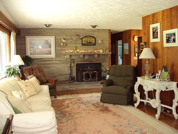 Quality Built 2 Family house situated on beautifully landscaped 1.4 Acre Lot lined with pines, Dotted with Fruit Trees and Raspberry Bushes. Central Air, All Appliances including washer and dryer. Larger 1st Floor Unit graced with solid cherry paneling - Oak Plank flooring and Stone Fireplace. House's smart design for extra income or in-law apartment and could easily be converted to a single family house. Basement fireplace adds warmth to Finishable space below. Many Extras - A Must See!