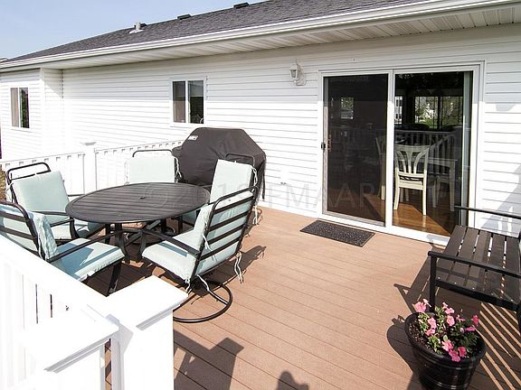 Wonderful Woodhaven open design home! Beautiful finishes like 6-panel hardwood doors, real wood floors in the kitchen and tile floors in the entryway. Master suite has a private full bath and walk-in closet. Lower level features an over-sized family room with a corner gas fireplace, a large & bright laundry area with heated floor. And the lower level full bath has heated floors too. Enjoy entertaining on the maintenance free deck that overlooks a beautifully landscaped yard with sprinkler system and play set (included) & private patio area behind garage. Come and enjoy one of Fargo's finest neighborhoods...Woodhaven!