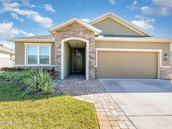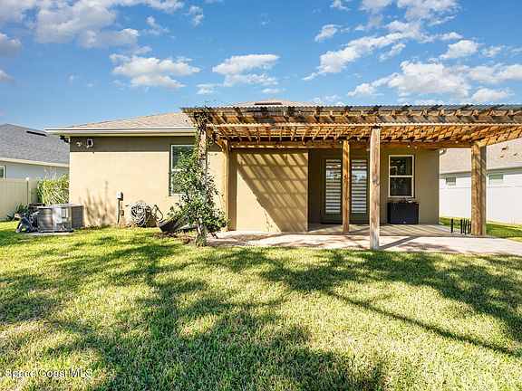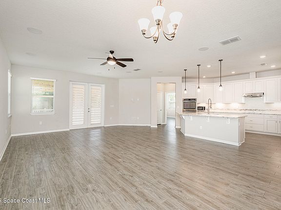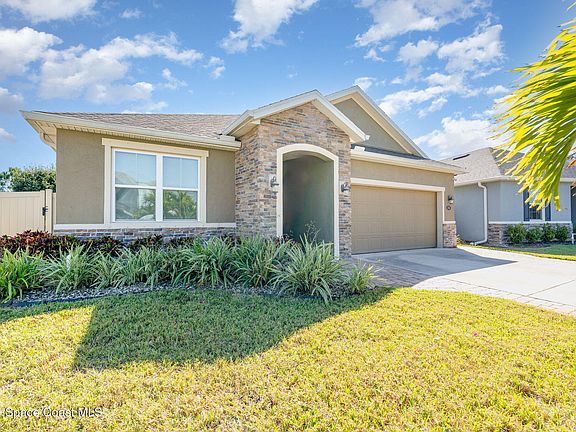 Tucked away on a quiet cul-de-sac street, this inviting, upgraded home sits on a serene conservation lot w/a fenced backyard overlooking the peaceful preserves. Wood-look tile flooring spans throughout. Spacious living/dining areas feature surround sound & French doors opening to a breezy covered lanai & an extended arbored patio stretching out to the sizable, sunny backyard. The showcase island kitchen shines w/a large breakfast bar, modern quartz counters, SS appliances, double ovens, a flat cooktop, tile backsplash & pendant lighting. Relax in a generous primary suite w/a walk-in closet & stylish bath w/dual sinks & separate tub/shower. Two additional bdrms flank a tub/shower bath, with the 4th bdrm nearby. Lawn care, washer & dryer included! Location can't be beat close to schools & the bustling Palm Bay Rd. corridor offering tons of shopping, restaurants, everyday conveniences & access to I-95.