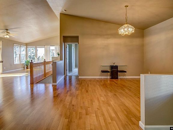 You'll know you're home the moment you enter this spacious 4 bed, 3 bath home located at the top of Caughlin Ranch, one of Reno's most desired areas. Highlights include hardwood floors, tall ceilings, built-in media center w/open shelving, neutral colors, natural light, Nest thermostat, and sweeping balcony views. Open kitchen features stainless appliances, pantry, breakfast bar & nook. Master on main level w/dual vanity sinks. Low maintenance, move-in ready!