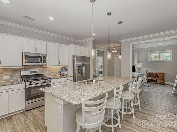 Beautiful, well cared for, move-in ready 2 bed, 2 bath, plus office located in the highly sought-after Trilogy Lake Norman community. The open-concept home creates an inviting atmosphere for entertaining. Gourmet kitchen w/oversized quartz counter island w/seating, gas range/oven, SS appliances and under cabinet lights makes this the perfect space for the chef! Enjoy your morning coffee or evening beverage in your large living room or open the sliding glass door to your screened-in porch as you look at the beautifully landscaped fenced-in yard. A spacious primary ensuite includes a walk-in closet, tiled shower w/seat plus a dual sink vanity in the bath. Low-maintenance luxury vinyl plank flooring in the main living areas. Walkable to neighborhood amenities that include lighted tennis and pickleball courts (currently under renovation), indoor/outdoor pools, bocci courts, fitness center, and more! Washer/Dryer/Refrigerator are included.