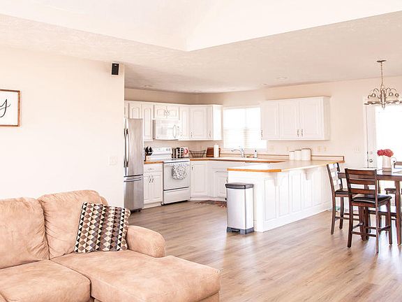 Beautiful home with a very open feel, this 3 bedroom, 2 bathroom home has split floor plan. Located in Karlin Acres, this is an immaculate home, fresh paint in living and kitchen areas and new flooring in bedrooms and living/kitchen areas. Features a covered porch on the front of home, a large living room with vaulted ceilings, kitchen has tons of countertop and cabinet space, large bedrooms and bathrooms. The master bath has double vanities, a tub and shower. The back yard has a covered porch perfect for watching the amazing sunsets or entertaining, and the yard is fenced in, has a great storage shed and an in-ground storm shelter!! Brand new roof in 2020, water softener and surround sound, and brand new refrigerator stays!