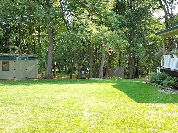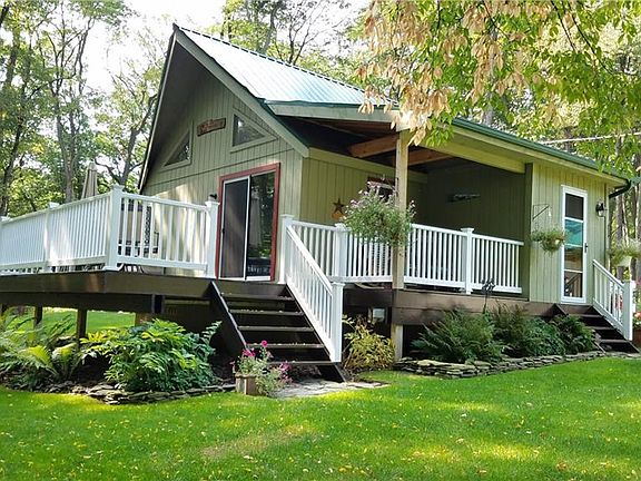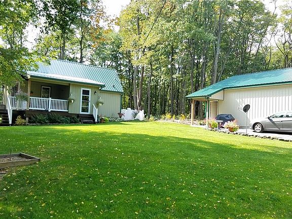 Totally adorable & lovingly maintained chalet style home tucked back on a quiet no traffic road w/11.45 acres wooded lot & a 27'x30' pole barn style shop w/10' ceilings, electric, cement floors & 2 overhead doors. Located a convenient 10 minutes north of launching your watercraft at Keuka Lake. Recent master bedroom addition & total remodel! Solid surface counters, beautiful cabinets w/convenient features. Vaulted ceilings make this home feel spacious & inviting. All new flooring, Cute loft overlooks living room. Expansive front deck and side decks. Mud/Entry Room. Beautiful, knotty pine bedroom with large ensuite bathroom w/ big closet. Metal Roof approx. 2 yrs. Groomed trails through the woods & you can walk the creek! 2 sheds (one is 12'x20'!). Kids play area.This home won't disappoint! All the work has been done for you!