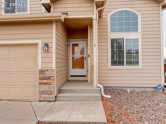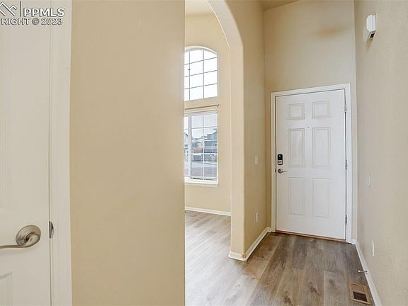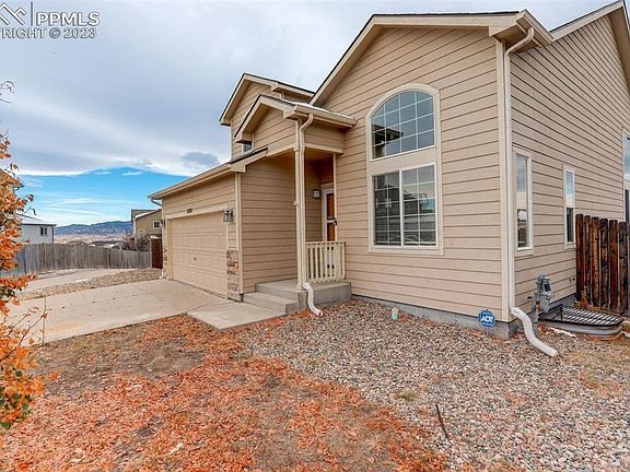 Set amidst the captivating scenery of Colorado Springs, this move-in ready home in the sought-after Painted Sky at Waterview neighborhood is a unique gem that awaits your arrival. This impressive home, nestled on an extra-large lot at the top of a tranquil cul-de-sac, offers a lifestyle of both serenity and convenience. The property's extraordinary features, combined with its breathtaking mountain views, are sure to captivate anyone seeking a modern haven that perfectly balances the call of nature and the amenities of city living. This three-bedroom, three-bathroom abode stands out in the neighborhood with its main-floor carpeted primary bedroom enhanced with a 5-piece ensuite bathroom. Wood laminate flooring graces the main level, providing both style and easy maintenance. The Kitchen features stainless and black kitchen appliances that blend form and function, making meal preparation a breeze. The home's interior is illuminated by an abundance of natural light, gracefully filtering through high vaulted ceilings and bathing the rooms in a warm, inviting glow. The generous lot size provides an extensive backyard and side yards, ensuring plenty of privacy, recreation, and entertainment space. The back of the home treats you to remarkable mountain views, a natural masterpiece that you can enjoy from multiple rooms within the house, as well as from a separately fenced patio area. This home's location is a boon to those connected with the area’s numerous military installations as it offes a short commute to work and the peace of mind of being close to family members in the military.