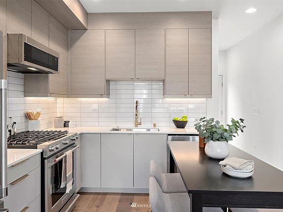 Another amazing project by Roland Development! Great location with easy access to Fremont, Wallingford & Greenlake amenities, Modern, classic aesthetics with functionality, clean lines & high quality finishes. Spacious interior unit with custom elements and light filled spaces. Hardwood floors through out, No carpet, custom tile work and thoughtful design with a well appointed kitchen that features high end appliance package, quartz countertops, fine cabinetry & tile backsplash. Generous primary suite with 2 walk in closets and a lovely primary bath, as well as a 2nd bedroom and bathroom on the upper floors. Both baths feature heated floors. Don't miss views from rooftop deck!! New sidewalk will be poured along Greenlake Way N soon.
