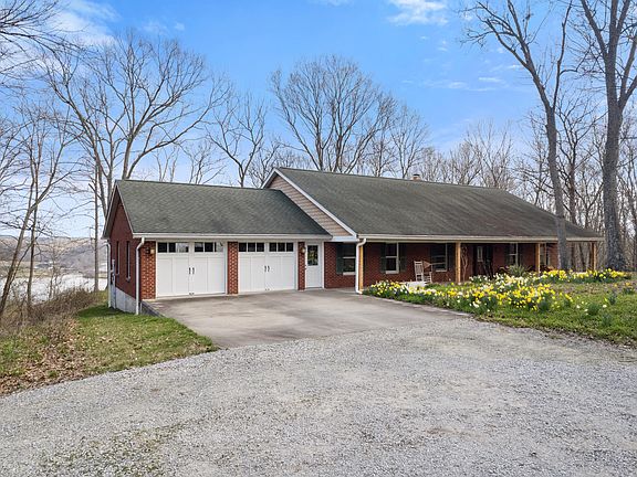 Welcome to your dream retreat a mere four miles from historic Augusta, Kentucky! This stunning single story 3 bedroom, 2 bathroom home situated on almost 70 acres of wooded land offers a unique blend of modern luxury and natural beauty. This secluded one-of-a-kind home was meticulously designed and constructed, ensuring the highest quality and attention to detail throughout. Wake up to breathtaking vistas of the Ohio River and enjoy your morning brew on the brand-new back deck. Experience the beauty of all four seasons through the Andersen picture windows that reveal all of Nature's glory around you. Stay comfortable year-round with a brand new energy-efficient geothermal heating and a warm wood-burning fireplace. After a long day of exploring the property's private walking trails, relax in the Jacuzzi tub with its own secluded views of the surrounding woods and wildlife. And no need to worry about the neighbors. Quiet and tranquility is assured by the 200 year old cemetery next door. This property offers a truly exceptional living experience, where modern comforts meet the tranquility of nature. Whether seeking a permanent residence or a weekend getaway, your dream home awaits!