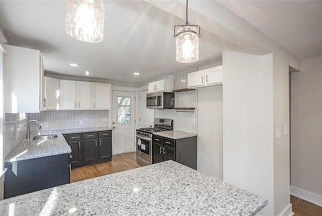 Hardwood floorsBrand new interiorsTwo bathsStainless steel appliancesThree bedrooms