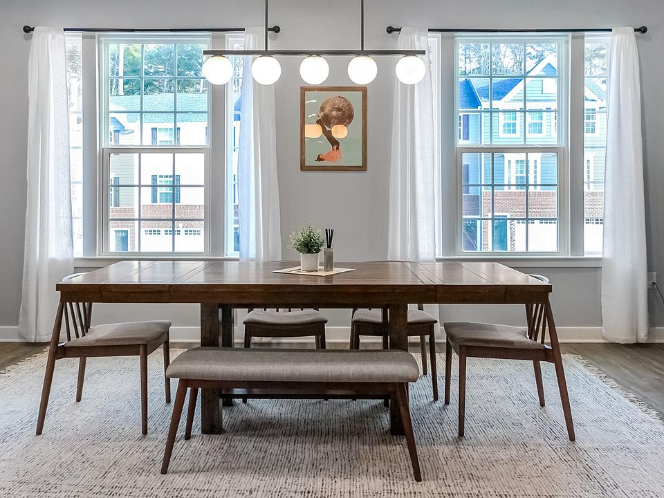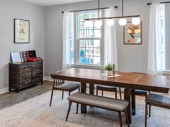Furnished with all updated furniture! All utilities included (internet, electric, gas, water, garbage, lawncare and landscaping)! Available May 01, 2023. We love this place and we can't wait for you to love it too! This is the perfect place if you are looking for a beautifully appointed, move-in ready, home away from home. This is a newly built, meticulously kept, furnished townhouse in a safe yet conveniently located community. First floor: Bonus room that can be converted to a den, office, bedroom, etc. as tenant needs (additional cost applies to convert to 4th bedroom). For now, we have a a ping pong table here! There is also a large storage closet along with a full bathroom with shower and bathtub. Off the bonus room, there is an attached garage with two spaces and new epoxy floors. Second floor: A beautiful open concept space! Upgraded appliances and backsplash - a super functional kitchen and bar counter, a full dining room, and a living room with a 75 inch tv. Plus a uniquely decorated 1/2 bath. There is plenty of room for storage in all of the cabinets along with a pantry room. The kitchen is stocked with everything you'll need to feel comfortable - from all dish and drink ware to cooking utensils, a spice set, pots & pans, and baking dishes. Third floor: There are three bedrooms in total. The master with an attached bath (shower plus separate bathtub) is furnished with a king bed. The two other rooms which share a bathroom are furnished with queen size beds. There is also a full linen closet along with a laundry room with an updated washer and dryer set. The outdoor deck and lower patio areas are great for hanging out and enjoying the protected land behind the house. Garage parking for two cars, driveway parking for two additional cars. Street parking is allowed. Location, location, location!! We are three quick turns away from I40, 15 mins to RDU, a walk to Creekside elementary, only 2 miles from blocks of grocery stores and shopping, and 10 minutes from Franklin Street! Within the community there are 2 volleyball courts, a playground and a dog park. A home away from home for executives, medical professionals, or any other travelers looking to stay in the Raleigh, Durham, or Chapel Hill area. Please reach out to us with any questions. We can't wait to meet you and show you your temporary home! This is a furnished townhouse available for 12 month + leases. All utilities included (internet, electric, gas, water, garbage, lawncare and landscaping)! No smoking allowed. Pets may be accepted with an additional fee. First months rent of $3100 and an additional $1500 security deposit required at lease start. Please note: Details above and included within this ad are subject to change before the final agreement with a tenant(s) and official lease signing.
