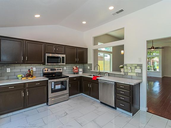 This beautifully remodeled 4/2 is located in a nice, desirable NW area close to shopping centers and freeway access. Home features an open floor plan with fireplace in large great room, kitchen with new marble countertop, new stainless steel appliances, new sink and faucet, new marble tile floor and recessed lighting. Both bathrooms have new marble shower enclosures with new shower doors, new marble vanities. There are new light fixtures, ceiling fans and new carpet in bedrooms along with new interior and exterior paint. Sellers have not spared any details in this exquisite , this is a must see !