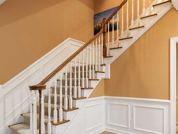 This is not your typical townhouse, this style home seems lives more like a single family home. It is not your typical long narrow townhouse. Enter by the covered portico into the foyer. The foyer has tile flooring, crown moldings and a guest closet. The large open area on the main level has an area for dining room, family room and powder room. The kitchen has tons of cabinetry, pantry closet and lots of counter space. There is a raised counter area for seating and a space for an informal dining space off the kitchen. The family room is welcoming with a gas fireplace with marble surround and built in cabinets.Enter via the highly upgraded garage and find a family coat closet for additional storage. The upper bedroom level has a large hallway, large hall laundry room, with lots of cabinets, a linen closet and lots of counter space and sink. The master suite has floor to ceiling windows, door to private owners deck, 2 large walk in closets and private bath. The bath has a large soaking tub, 2 sink areas, luxurious shower with dual shower heads, and private water closet. The 2 additional bedrooms on this level are quite large with ample closet space. These 2 bedrooms share a very large hall bath with dual sinks. The uppermost level offers a private space for an office, nanny suite or guest suite. There is a large closet and private bath. The lower level is walk out, has a bar area that is wonderful for entertaining. There is another gathering spot with a gas fireplace with marble surround and built ins, walk out to patio and rear yard. The utility room is also finished with a room used for a gym and another area for storage and mechanicals. This is a Large NV Model townhouse in Cascades by Trump Golf Course. This house is HIGHLY upgraded, 4 levels, 5 bedrooms, 4.5 baths, new Hickory Wood flooring on the main and bedroom level, super snazzy garage with organizer system and Polyaspartic flooring, plantation shutters through the home, extensive crown molding and trim package, tray ceilings, composite deck off main and master, walk out lower level to stone patio, walk to Golf Course and River. THE UPGRADES: NEW HICKORY HARDWOOD FLOORING ON MAIN AND BEDROOM LEVEL, PLANTATION SHUTTERS ON EVERY WINDOW AND DOOR, TRAY CEILINGS, LOTS OF CROWN & CHAIR MOLDING, TEN FOOT CEILINGS, GARAGE IS FINISHED WITH STORAGE AND FLOORING, GRANITE IN ALL BATHS, BUILTS IN AROUND BOTH MARBLE SURROUND GAS FIREPLACES, CEILING FANS IN EACH BEDROOM, COMPOSITE DECK OFF MASTER AND MAIN LEVEL, WALK OUT LOWER LEVEL TO STONE PATIO, WIRED FOR SOUND WITH SPEAKERS ON MAIN,LEVEL, MASTER BEDROOM, GUEST BEDROOM, LOWER LEVEL AND OUTSIDE,