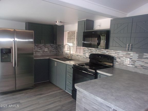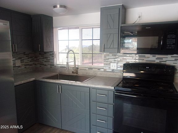 Rimrock, Perfect for first time homebuyer or a great investment property. Home is situated on 3 lots total 0.42 acre Home has total remodel Completed in 2024. Wood stove for added heat for those chilly nights. Main bedroom has a spacious closet and ceiling fan. Guest room has its own mini-split. Bathroom has a linen closet and a large, tiled walk-in shower with a middle rain head. Sliding barn doors lend a warm country feel throughout the home. Covered rear deck. Side covered deck offers mountain views. 3 storage sheds for added storage. Full RV Hookup on the west side of home and RV electrical hook-up on east side of home. Plenty of room for your toys and RV parking. Fully fenced 4 gates. Yard is ready for your personalized landscaping and room for a large garage. Owner will Carry terms.