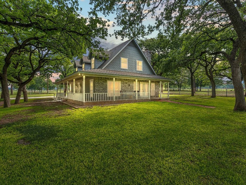 Sub-dividable and NO Deed Restrictions! Texas Paradise just outside of city limits! This 3 bed 3 bath Charming Farmhouse sits on 11.61 acres, producing coastal, new 3 stall barn and another 2 stall mare motel paddock. The property is ag exempt, fully fenced, has an open arena and is just breathtaking! The nicest sandy loam, clay soil you could want! Auto sprinkler system around the main home. The Wrap around porch will steal your heart as you sit and watch your horses play in the pastures! The home is bright and nicely updated. The kitchen features granite counters. Living room, bedroom and family room downstairs. All new windows upstairs. Upstairs also features 2 master bedrooms with baths. Oversized 24' x 30' garage. It doesn't get much prettier than this!! Location is ideal and so convenient to I-20, Fort Worth (35min), DFW airport (1hr) etc. A true horse lover's paradise!!