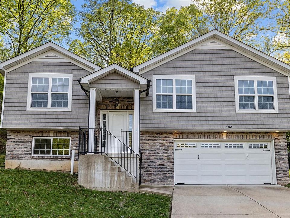 Welcome to this beautiful, open split foyer home on a quiet cul-de-sac in House Springs! You'll love the curb appeal with craftsman details and brick accents. The main level is perfect for entertaining, with the vaulted living room flowing into the dining room and kitchen, which boasts stainless steel appliances, luxury vinyl plank flooring, stylish lighting, and staggered cabinets with crown molding. The master suite features dual closets and a full bathroom. Two more spacious bedrooms and another full bath complete the space. The finished lower level adds a family room, full bath, and a mud room area off the garage with a walk-in closet. Enjoy the weather in the private, fenced backyard with a patio and view of the woods beyond. Just moments from schools and highways, this home is one you will not want to miss! Home to be sold in as-is condition. Seller to do no inspections or repairs.