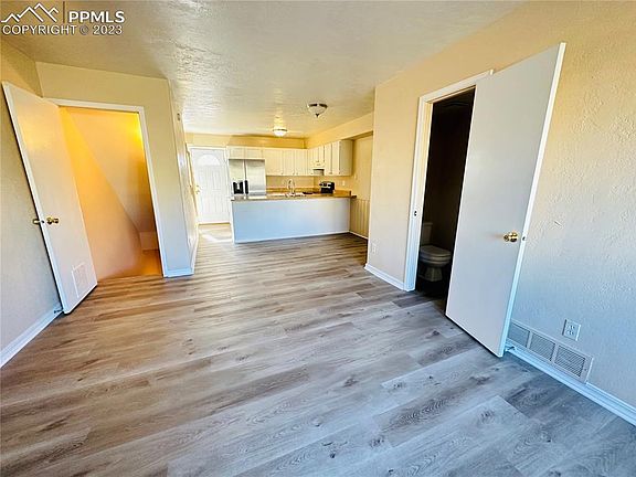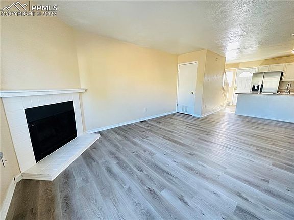 Don't miss out on this 2 story townhome with 3 bedrooms and 3 bathrooms that's beautifully updated throughout! Brand new LVP (Luxury Vinyl Plank) flooring. Light and bright inside. The living room with wood burning fireplace is open to the kitchen, which is finished with Stainless Steel appliances and bright white cabinetry. Step out onto the back porch which is perfect for a grill and includes additional storage space. Stay cool in the summer with Central AC! Upstairs has 2 spacious Bedrooms, a beautiful updated full bathroom, and conveniently located laundry. This special townhome unit also has a Rare 3rd bathroom with shower and 2nd fireplace in the 3rd large bedroom in basement. The big basement bedroom with modern fireplace and Rare 3/4 bathroom creates an ideal in-law, roommate, or guest setup, or could just be used as bonus or office space. Lots of little updates throughout including custom built-in shelving. Great location in a conveniently located neighborhood close to amenities and recreation, with easy access to I25 and the Powers Corridor, Ft. Carson, Schriever AFB, and Peterson AFB. This turn key townhome is move in ready!