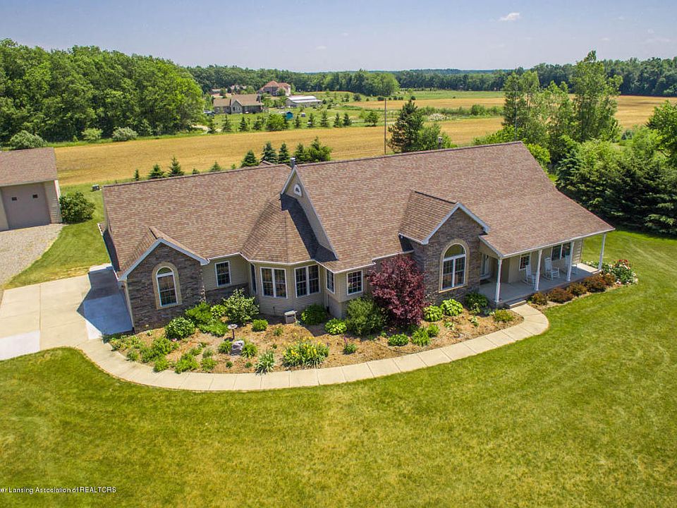 Stunning 2700 sq. foot sprawling, newer ranch home on 2.18 acres with a look-out finished lower level and over 1800 more finished sq. feet! Wonderful open floor plan! Great room, formal dining room including special ceiling effects, plus doors to a wonderful covered porch. Gleaming Brazilian Kola floors in the kitchen and dinette. Loads of Cherry cabinets plus stainless steel appliances. Charming informal eating area nestled on a bay of windows with a built-in breakfront. 1st floor master suitewith walk-in closets, master bath has double sinks and granite counters. An over-sized four-season room/family room features a fireplace with access to the porch. 1st floor laundry. 3+ car attached garage complete with a staircase to the lower level. Two more bedrooms on the main floor with a full bath. Exciting 700 sq. ft. Bonus room on the 2nd floor! Full lower level features a kitchen, media space, study, and exercise room or 4th bedroom plus another full bath & loads of storage.