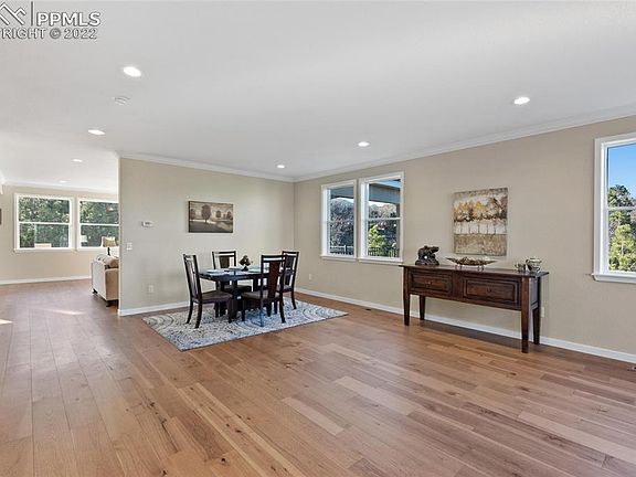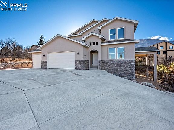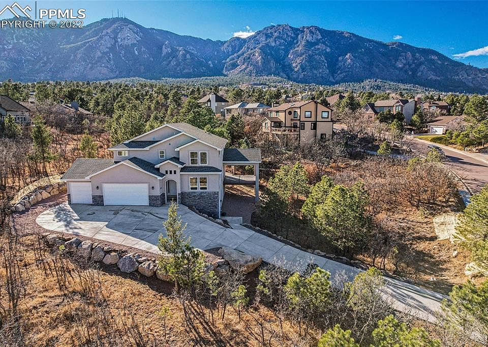 Stunning new construction in Broadmoor Bluffs Park. Open concept living with 6 bedrooms and 4 bathrooms. Through the front door, the Hickory hardwood floors grace the entire main level. The front room can serve as a second living room and formal dining room. The family room features gas fireplace with beautiful stone hearth. Gourmet kitchen flows easily from the family room featuring a large island with bar stool seating and granite countertops. Custom cabinetry throughout the kitchen with natural gas range and hood vent. All stainless appliances and double built-in ovens. This eat-in kitchen is any chef's dream come true. Upstairs features 4 bedrooms PLUS a loft and laundry room. The master suite graces the second level with a private balcony looking onto Cheyenne Mountain. The 5-piece master bath features soaking tub and standing shower with wrap around custom tile work to the ceiling. Walk through the bathroom to the oversized walk-in closet that continues on to the laundry room. Upper laundry room has access from both the loft and the master closet. Laundry room features built in cabinets and utility sink. A spacious loft for a reading nook or play room. There are three additional bedrooms with large walk-in closets. A second full bathroom on the upper level features dual vanities and large granite countertop. The walk-out basement has a wet bar with granite counters and barstool seating. The rec room has walk-out access to the side of the home with a concrete walk path around to the front driveway. Down the hall features two more bedrooms and another full bathroom with dual vanity. Sit outside and enjoy the views on the wraparound, covered Trex deck. Enjoy the quite serenity of the trees and privacy around you. Sitting on over half an acre, this home features almost 5,000 finished square feet with high end custom finishes throughout and private outdoor living spaces. Enjoy views from every window of Cheyenne Mountain, the Shrine, or downtown Colorado Springs.