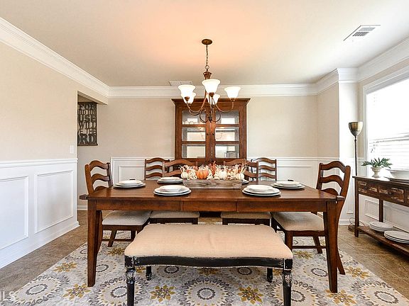 Corner lot with side entry garage, this home is a fantastic find in sought after school district! Main level is tiled throughout with a bedroom and full bath with walk in shower. Living room with 9 ft ceilings opens up to kitchen with island, breakfast bar and large pantry. Beautiful wainscoting and moldings throughout the entire home. Front and back yards are freshly sodded with a privacy fence surrounding the level back yard. 4 bedrooms up including a stunning master suite with vaulted ceilings. Bonus room upstairs offers many possibilities. Amenity rich community!
