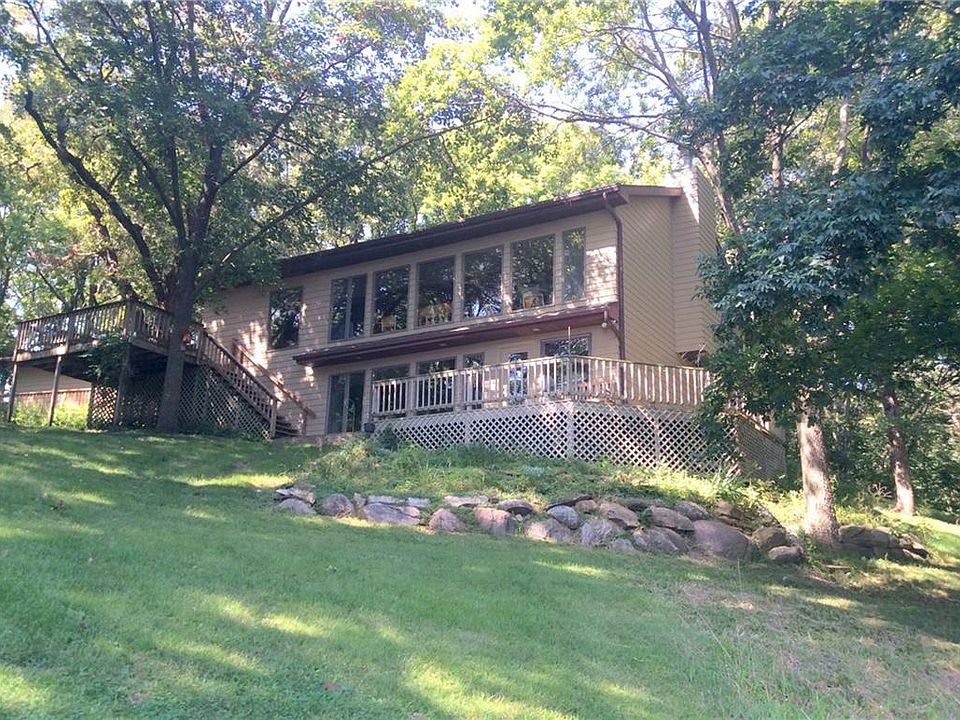 Waterfront (Envelope) Home on Two Lots. Passive Solar Home Design. Great Lake Location and LP National Golf Course Five Minutes with your Cart. Nestled under mature trees for your Lake relaxation. MAIN LEVEL: New Kitchen with many Custom Built Cabinets. Penisula Serving Area open to Dining Area. Living Room with WB Fireplace. Master Bedroom, Guest Bedroom, Full Bath. You will spend your time in the Attractive Solarium with Lake Views. Open Oak Stair Case to LOWER LEVEL: Large Family Room with Sliders to Solarium and Lakeside Wrapararound Deck. Lakeside Guest Bedroom. Sleeping Room-non conforming. 3/4 Bath. Large Storage Area. Concrete Walk and Steps to Cantilever Dock. Two Car Detached Garage with Level Drive. Nine Minutes to Panora. Great Panorama Community Schools. Raccoon Valley Bike Trail. Links Restaurant. First Class Marina. LPA has 24/7 Security Department. Don't Miss This One!