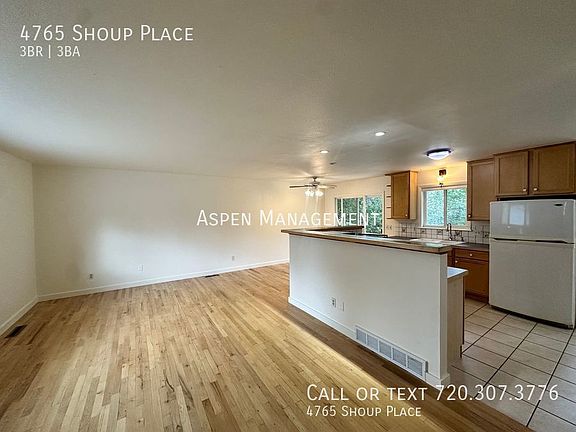 This recently refreshed 3 bedroom and 2.5 bath home with bonus room will check all of the boxes. As you pull in to the driveway you will immediately notice the beautifully landscaped front yard, as well as the attached two car garage. The interior of the home features an open floor plan, wood floors, gas stove, separate living areas, washer dryer, finished basement, and so much more! Also enjoy your weekends, evenings, or gatherings in the serene back yard with patio and storage shed. Schedule your tour today before it is gone! Sorry, no undergraduate students. Sorry, no cats. 1 dog under 35 pounds and over 1 year old permitted with standard pet fee and deposit. Portable Tenant Screening Reports (PTSR): 1) Applicant has the right to provide Aspen Management with a PTSR that is not more than 30 days old, as defined in 38-12-902(2.5), Colorado Revised Statutes; and 2) if Applicant provides Aspen Management with a PTSR, Aspen Management is prohibited from: a) charging Applicant a rental application fee; or b) charging Applicant a fee for Aspen Management to access or use the PTSR. If Applicant provides Aspen Management with a PTSR: a) the PTSR must be available to Aspen Management by a consumer reporting agency/third-party website that regularly engages in the business of providing consumer reports; 2) the PTSR must comply with all state and federal laws pertaining to use and disclosure of information contained in a consumer report by a consumer reporting agency; and c) Applicant certifies that there has not been a material change in the information in the PTSR, including the Applicant's name, address, bankruptcy status, criminal history, or eviction history, since the PTSR was generated.