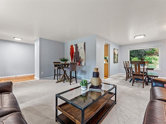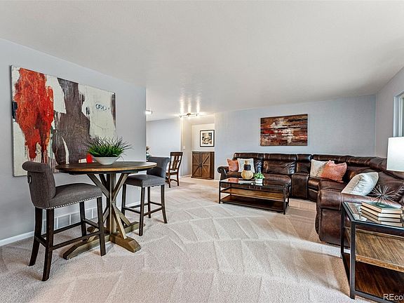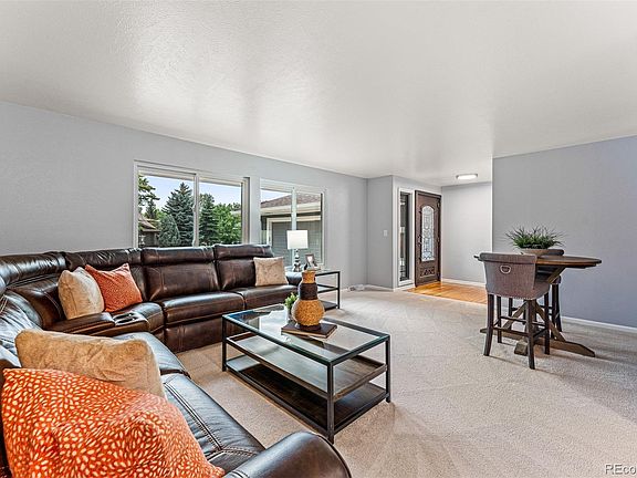 Don't miss this spacious four-bedroom (one non-conforming) , three-bath home on an extra-large lot in the Hyland Greens neighborhood. The split-level layout provides both a light-filled, open floor-plan and multiple living spaces for relaxing and entertaining. There's a comfortable and inviting family room with gas fireplace and a kitchen with views of the gorgeous yard. Don't miss the flexible, non-conforming fourth bedroom with en-suite bath which would be great for guests or the perfect home office. New carpet and paint inside, plus new Andersen windows, Hardie Board siding, and updated irrigation in the front and backyard. Outside, a new TimberTech deck is ready for entertaining, BBQs, and a hot tub—the structure has been fully reinforced and a 220V outlet added. Beyond the deck, the terraced landscape leads to a hilltop landing with stunning views. The home also backs to the High Line Canal trail which you can access through your own private gate. With so much to offer, this home will go quickly!