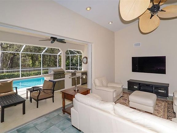 Don't miss this opportunity to be close to Siesta Key Beach and downtown Sarasota. This meticulously maintained 4BR/2BA home is situated on a quiet cul-de-sac. Relax on your lanai with the wooded area serving as a serene backdrop. Some of this home's highlights include an updated kitchen with granite countertops and stainless steel appliances, a gas heated (heater new Jan 2016) pool which was resurfaced in Sept. 2017, an outdoor kitchen, appliances and washer and dryer less than 3 years old, a/c replaced in 2009 with a 4 ton 16.9 seer unit. This is a natural gas community. The hot water heater, stove, dryer, outdoor grill and burner are all gas. A complete feature list is attached. As an added BONUS, enjoy your 65" 4K OLED TV!