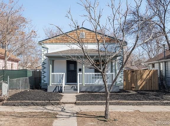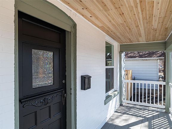 This beautiful and charming early Denver brick bungalow is not one to miss! This gorgeous home greets you with a porch made for morning coffee's. Upon entry you are welcomed with tall ceilings, beams, exposed brick, chevron flooring, and more. This open floor plan is the perfect layout for entertaining and living. Both bedrooms have ample room. The primary bedroom features a private ensuite. The kitchen is designed with new soft close cabinetry, quartz counters, brand new appliances, and lots of sunlight. Off the back of the kitchen you'll find a secondary guest bathroom, and a sizable laundry space. There is BRAND NEW windows, furnace, central AC, and more. Previous owner installed sewer clean outs and made repairs as well as updated the electrical panel. This charming home is ready for you!